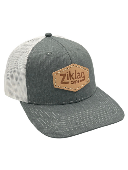Heathered Grey/White Adjustable Trucker Cap with Genuine Leather Patch