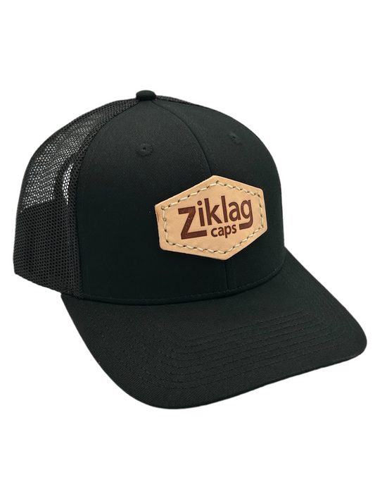 Black Adjustable Trucker Cap with Genuine Leather Patch