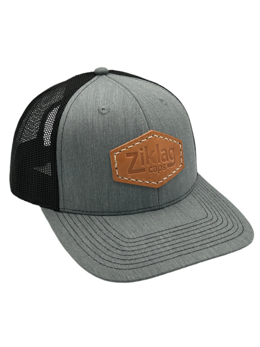 Heathered Grey/Black Adjustable Trucker Cap with Genuine Leather Patch